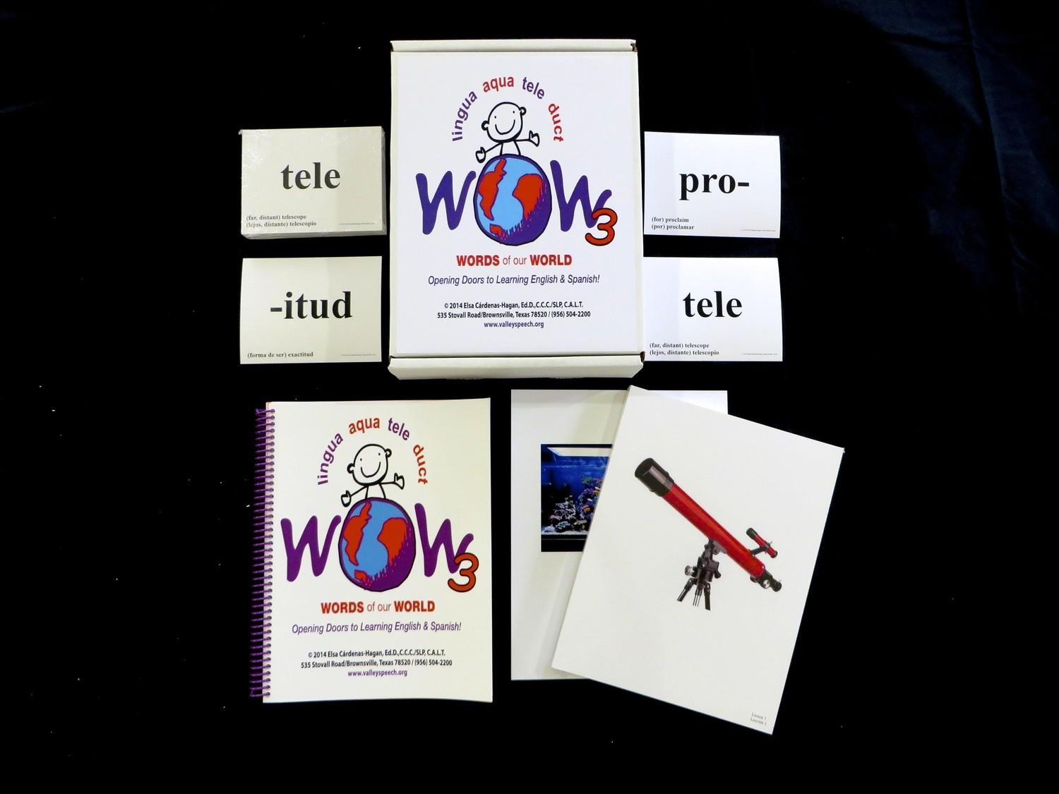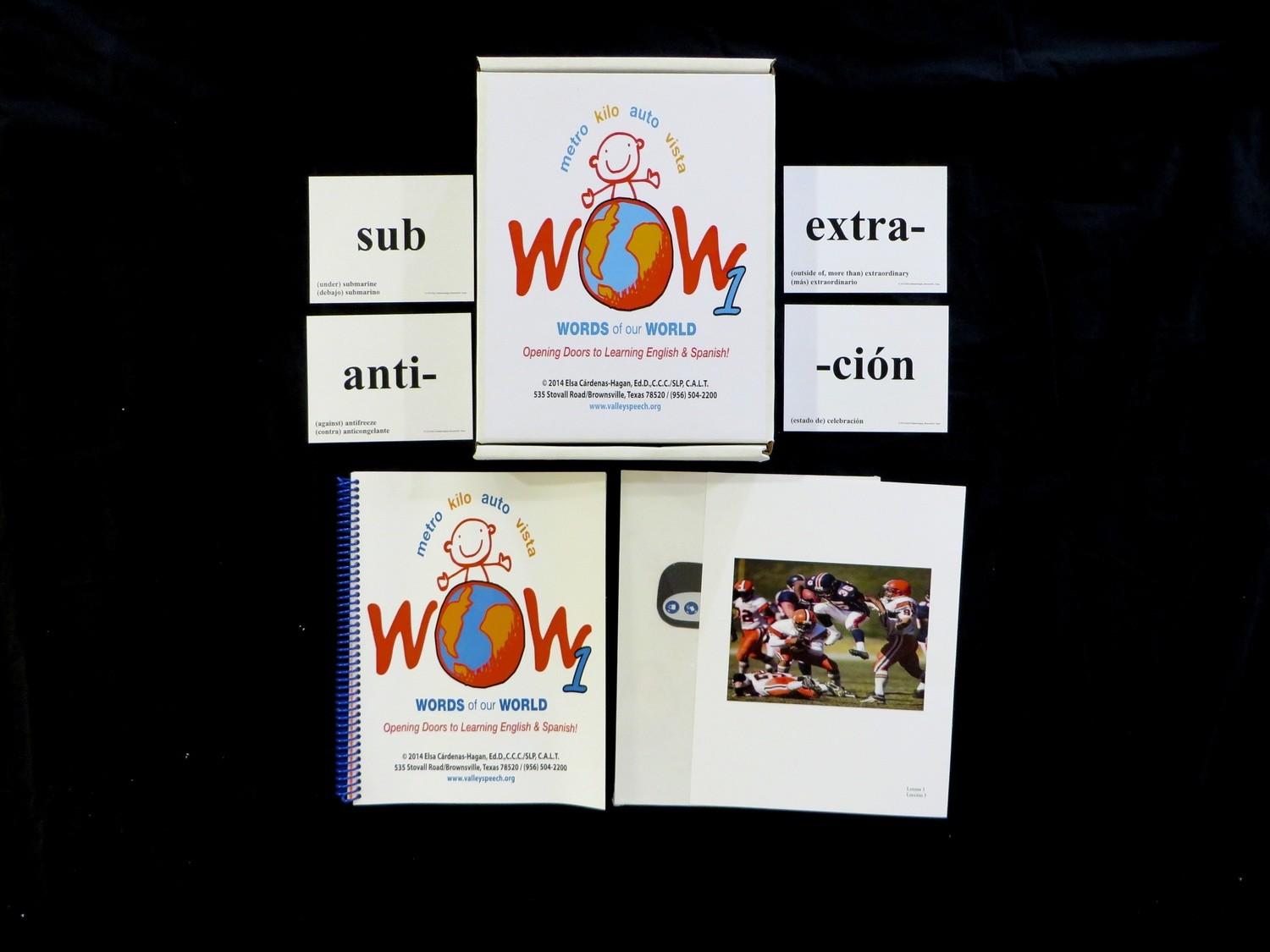 (Worlds of our World): WOW is a vocabulary program designed to enhance and develop vocabulary in English and/or Spanish. WOW has three levels and introduces word parts such as prefixes, roots and suffixes which transfer from Spanish to English and English to Spanish.